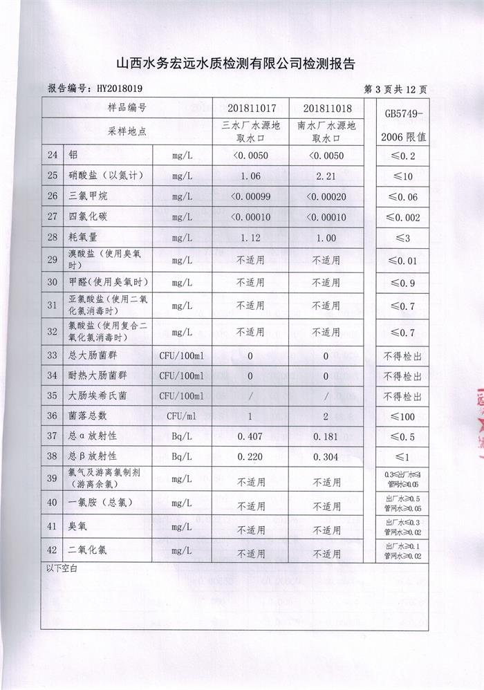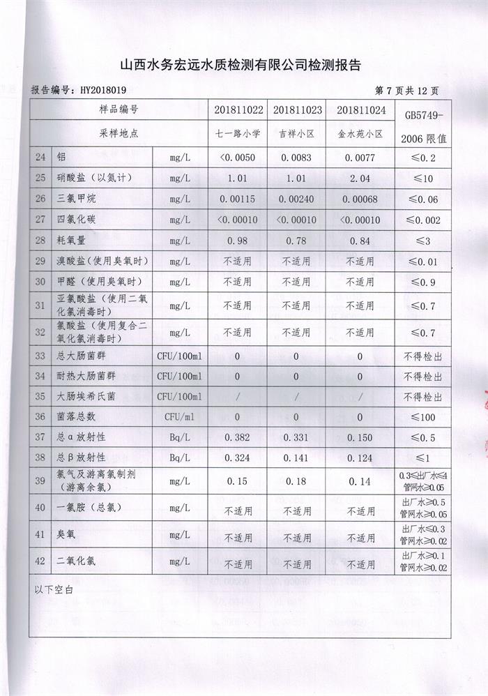 忻州城區(qū)公共供水水源水、出廠水、管網(wǎng)水、管網(wǎng)末梢水2018年11月份水質(zhì)信息公示